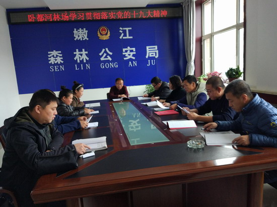 为深入学习宣传贯彻党的十九大精神,坚定不移贯彻落实习近平新时代中国特色社会主义思想。2017年11月13日,卧都河林场党支部在嫩江森林公安局会议室组织召开学习贯彻落实党的十九大精神专题会议。